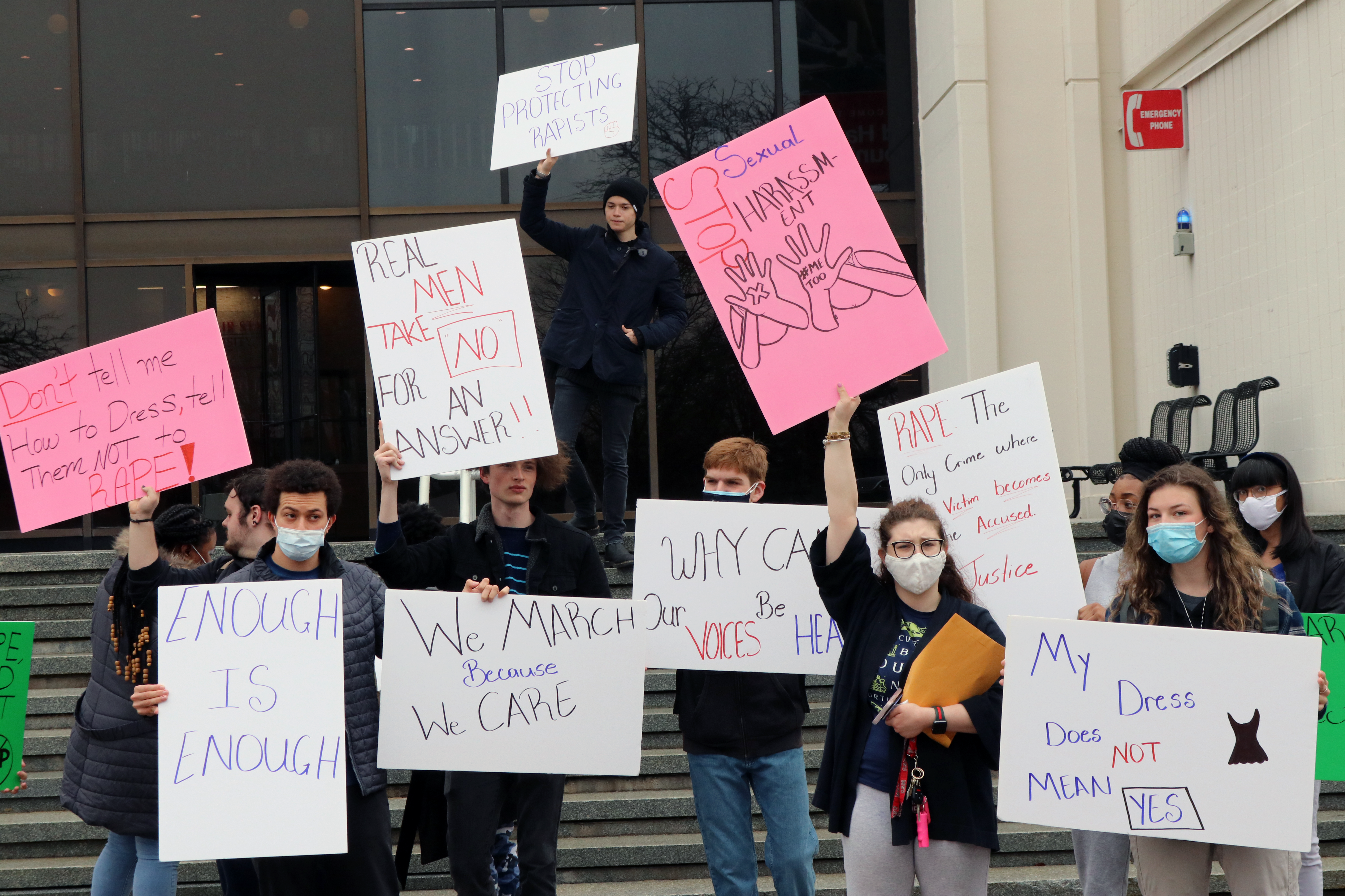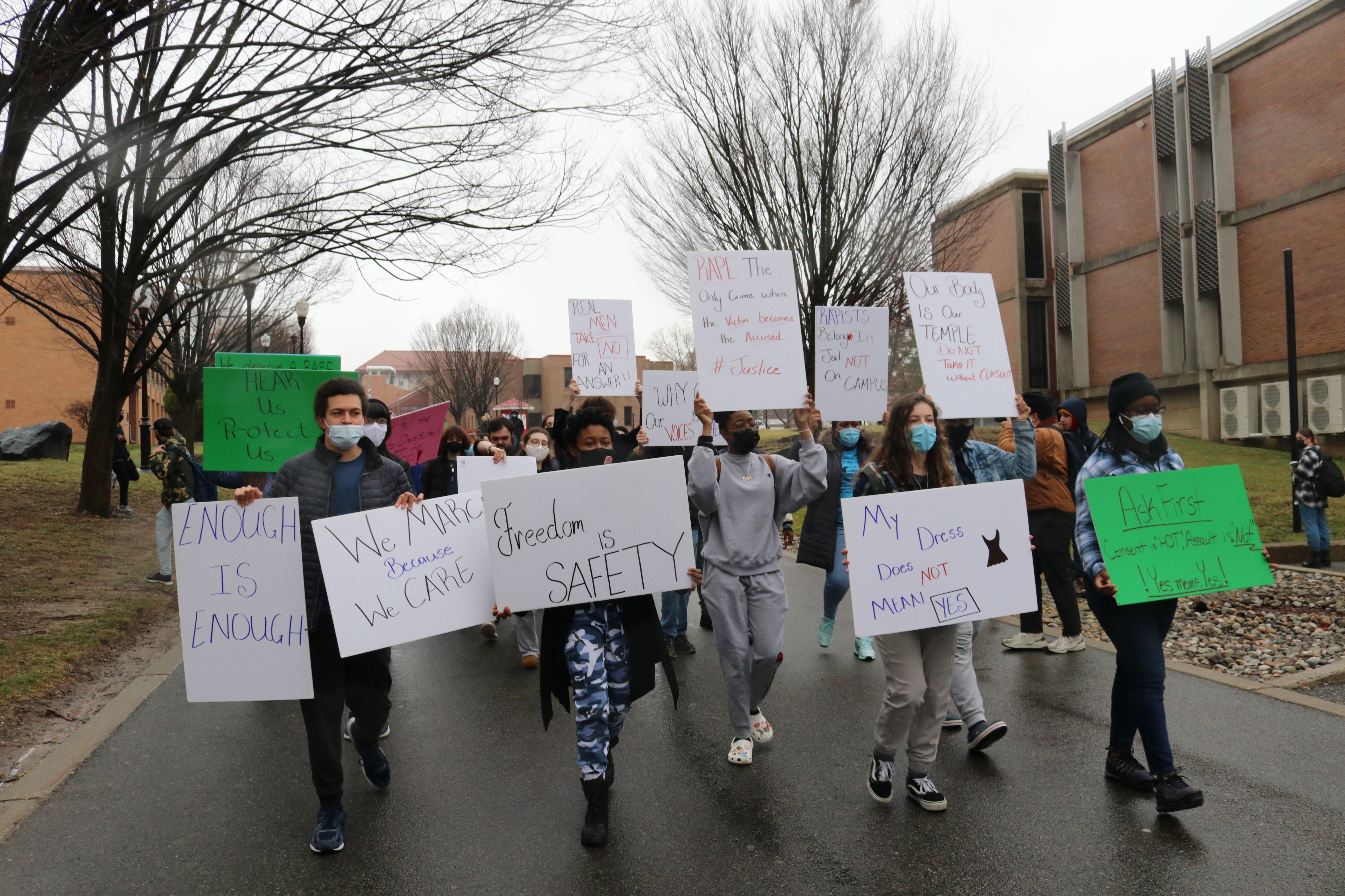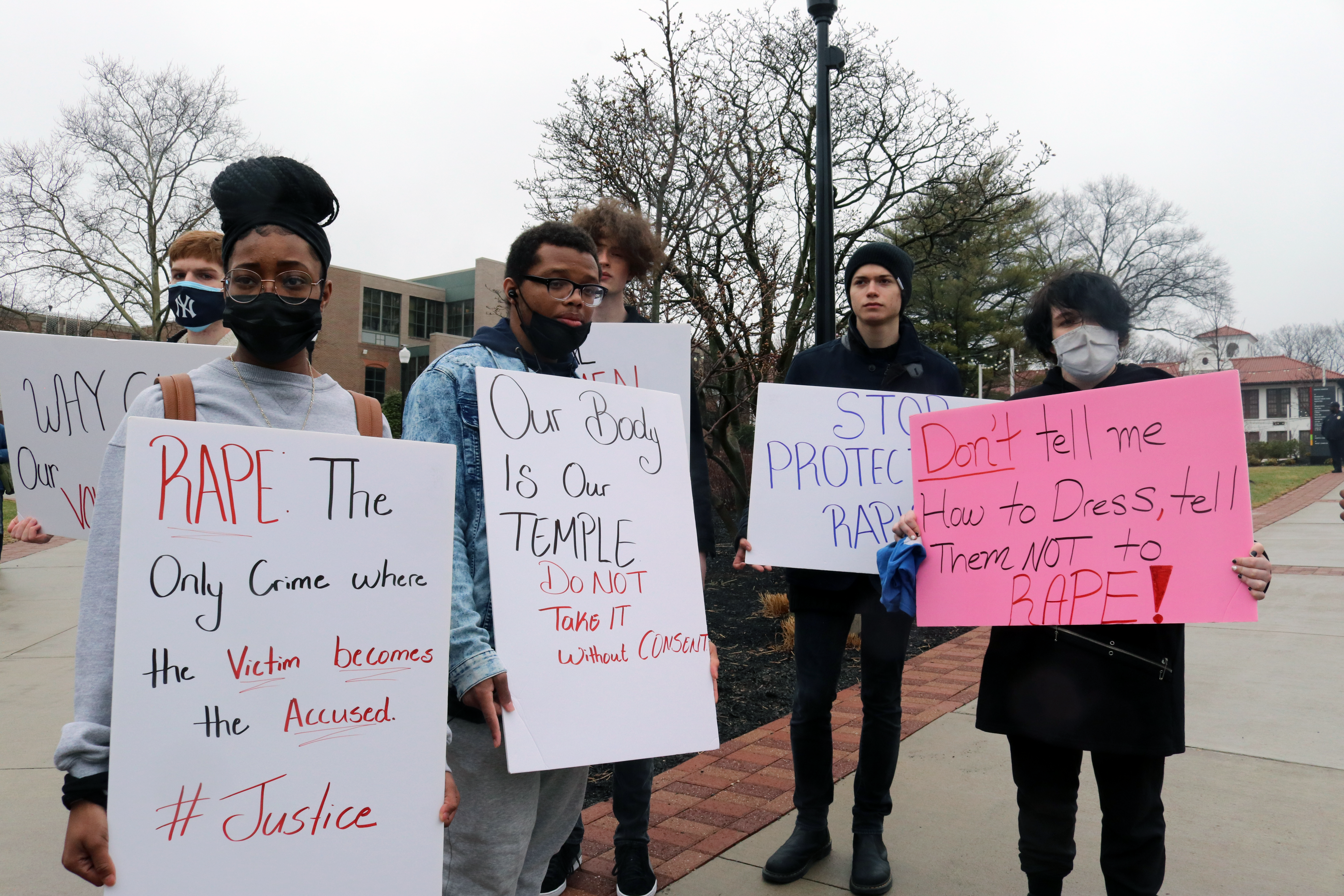 Montclair State students marched from the student center to Cole Hall on campus on Monday March 28 to peacefully protest how the university handles issues of sexual assault, sexual harassment and rape.